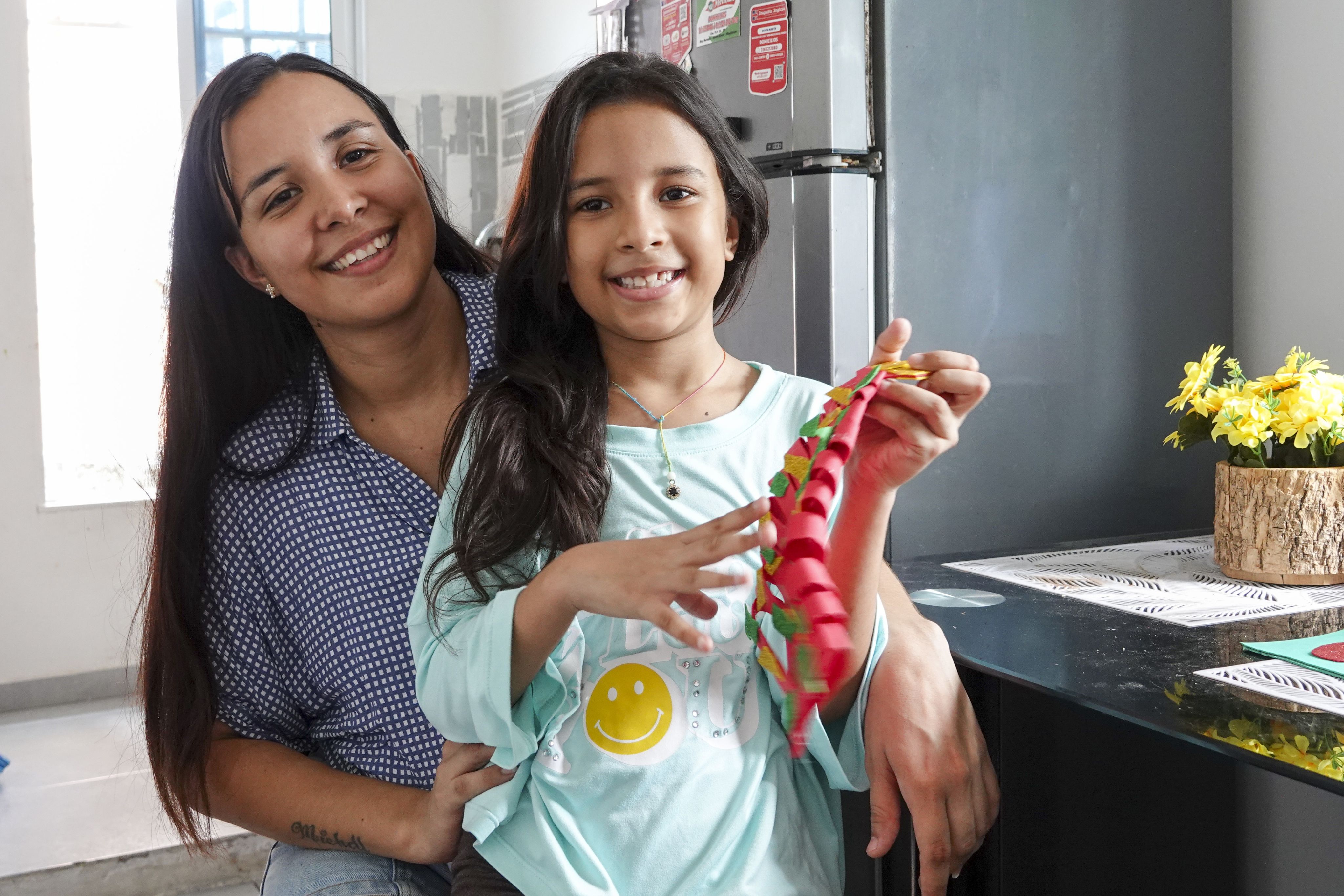Paola junto a su hija mayor, quien cursa cuarto grado de primaria.