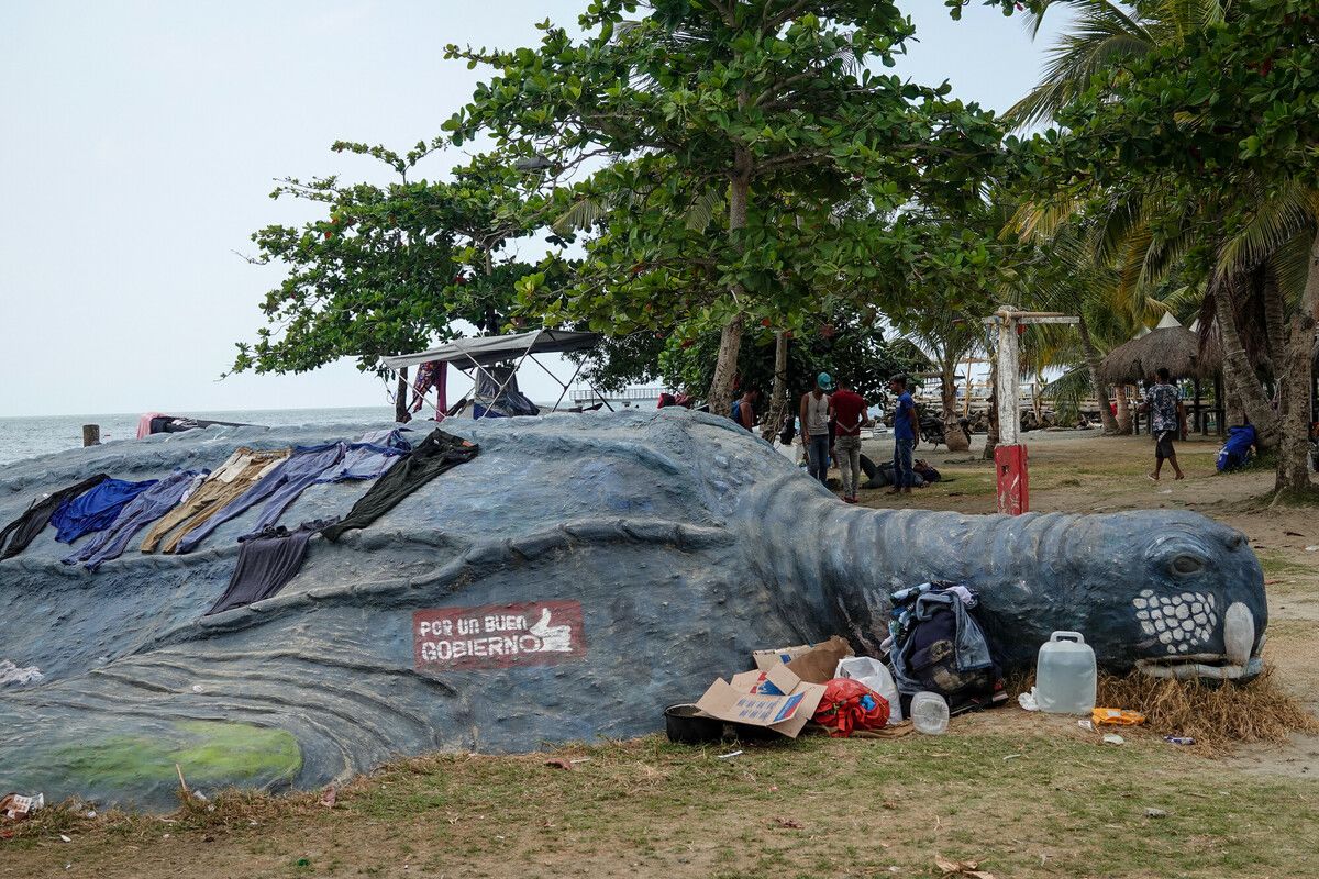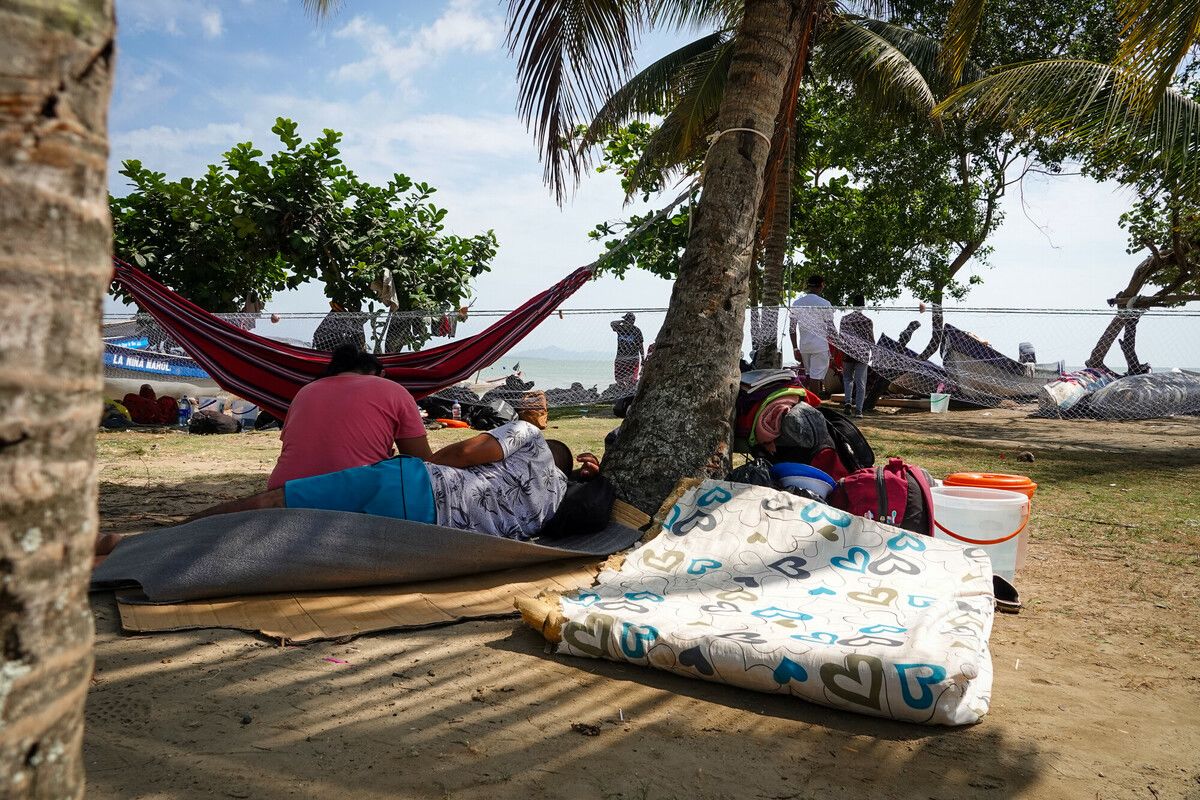 Personas refugiadas y migrantes duermen en la playa en Necoclí. Foto: Milena Ayala / NRC