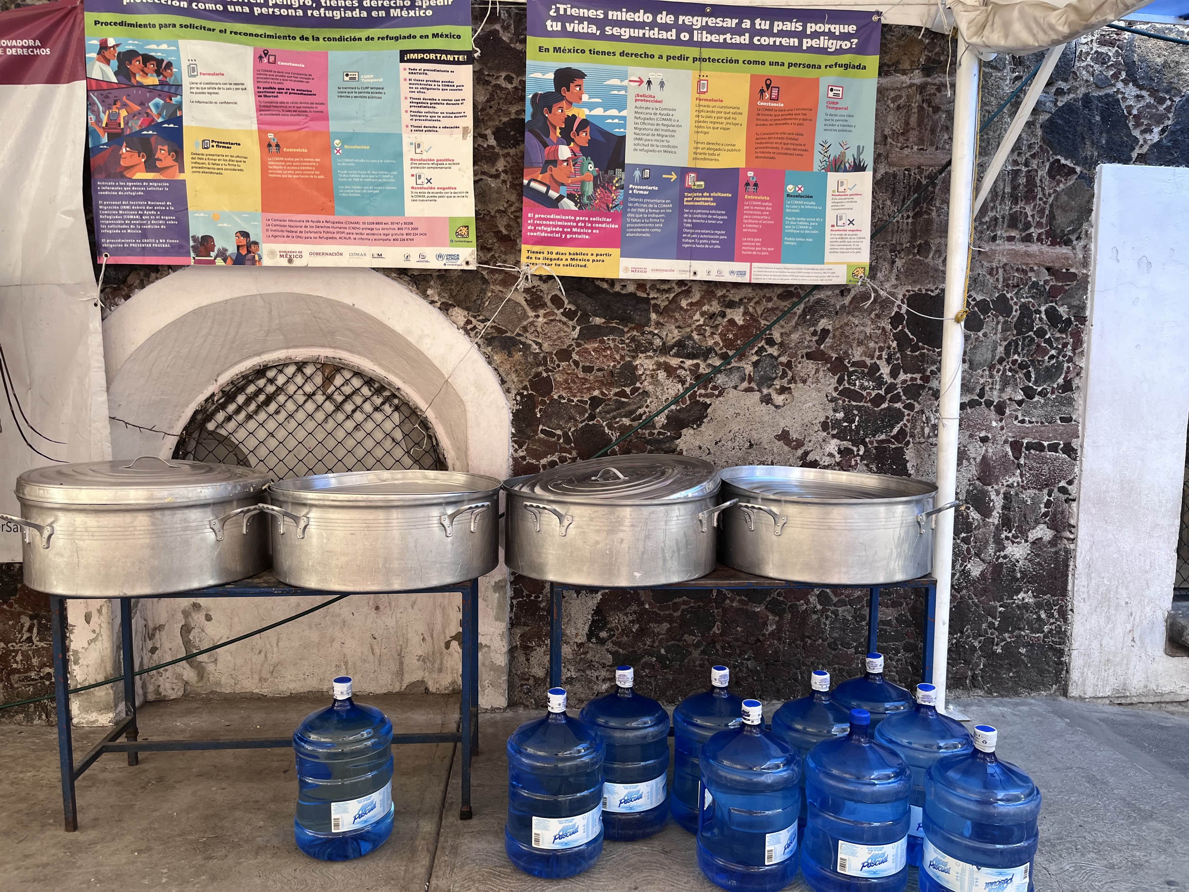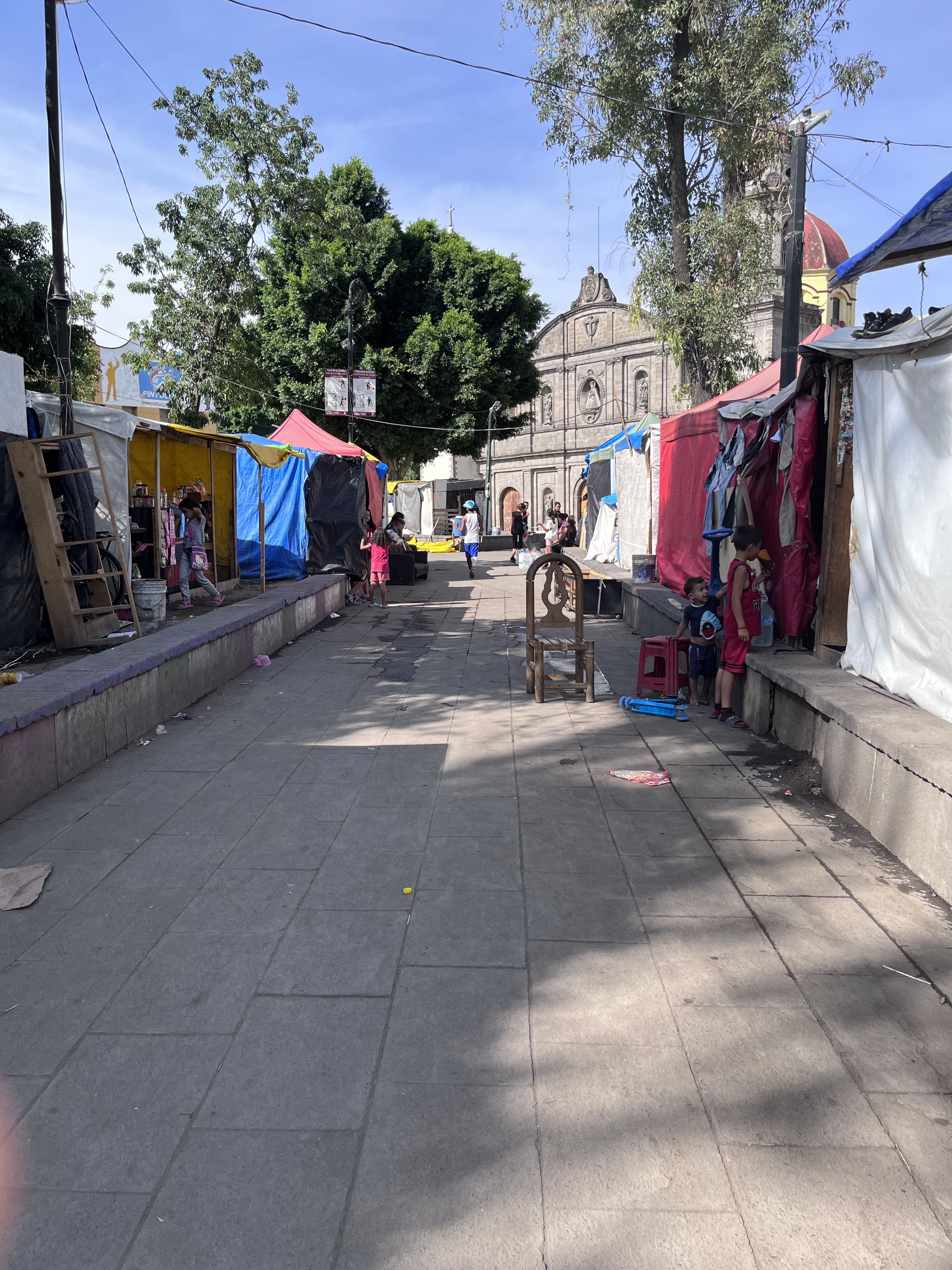 No hay registro oficial de cuántas personas están en esta situación, pero, por ejemplo, la antigua iglesia de La Soledad, en el corazón de la Ciudad de México, alimenta diariamente a un promedio de 800 personas que esperan en un campamento improvisado en la plaza de enfrente. La iglesia, que ayuda a refugiados y migrantes a través de donaciones y voluntariados, también habilita duchas para que puedan bañarse.