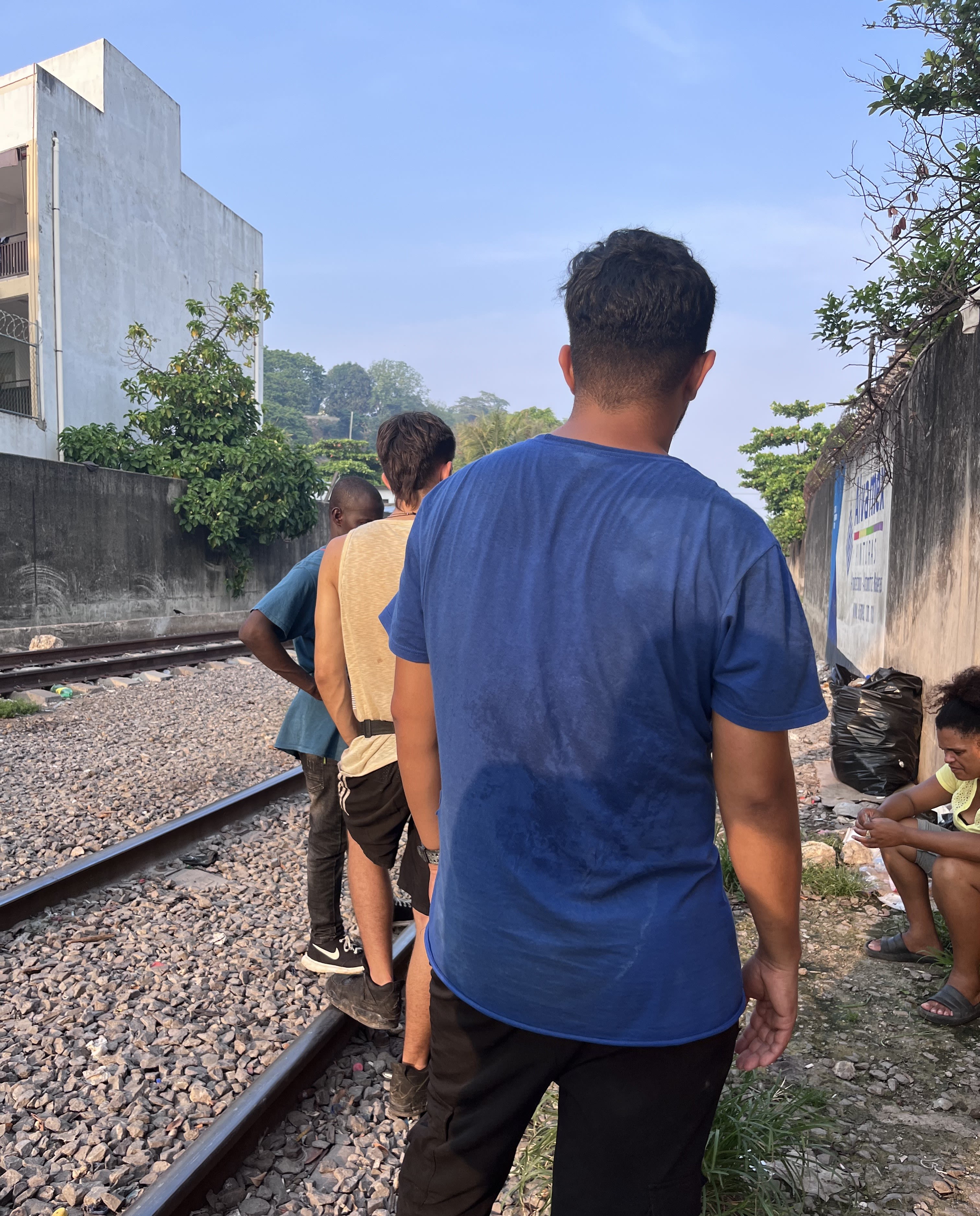 Personas refugiadas y migrantes en espera del tren para avanzar hacia el norte de México.