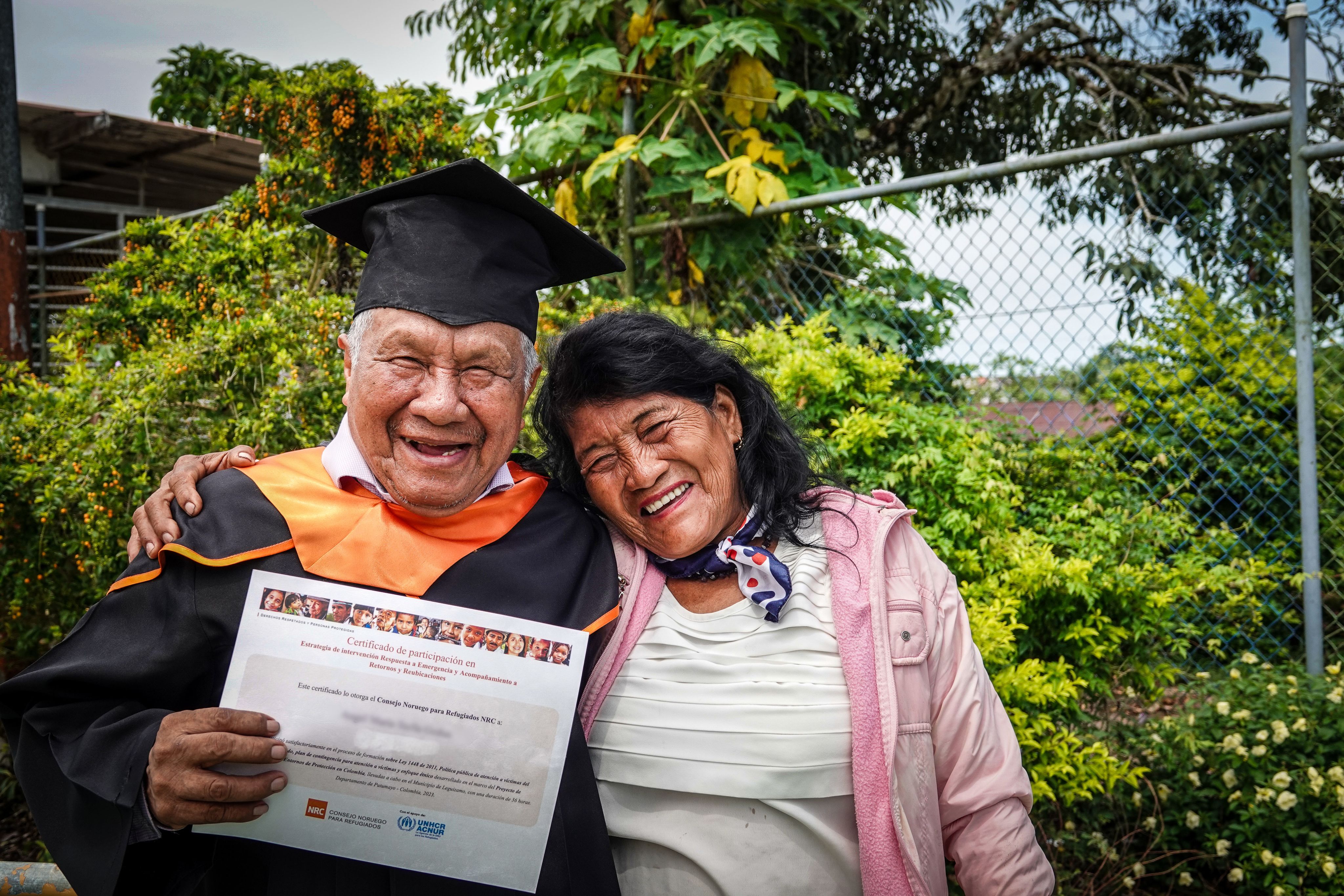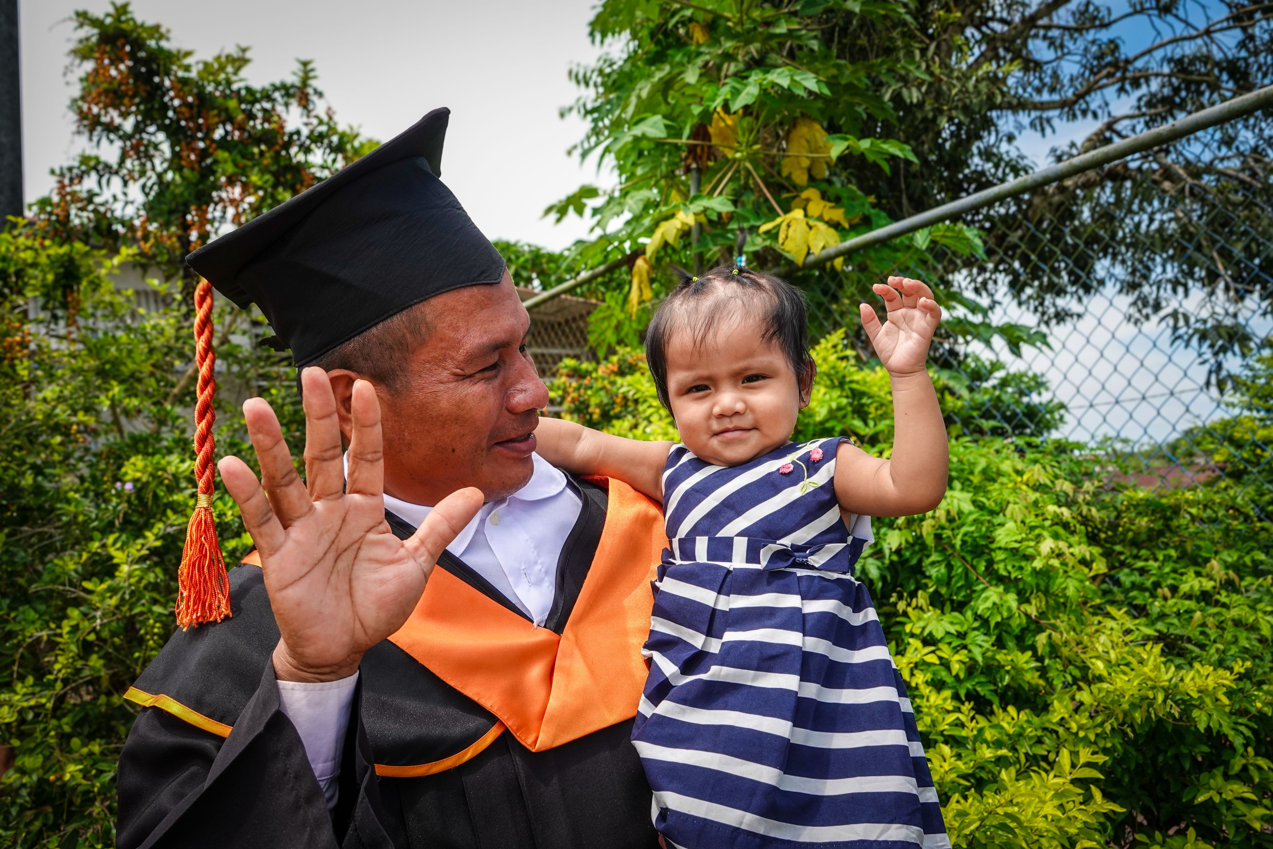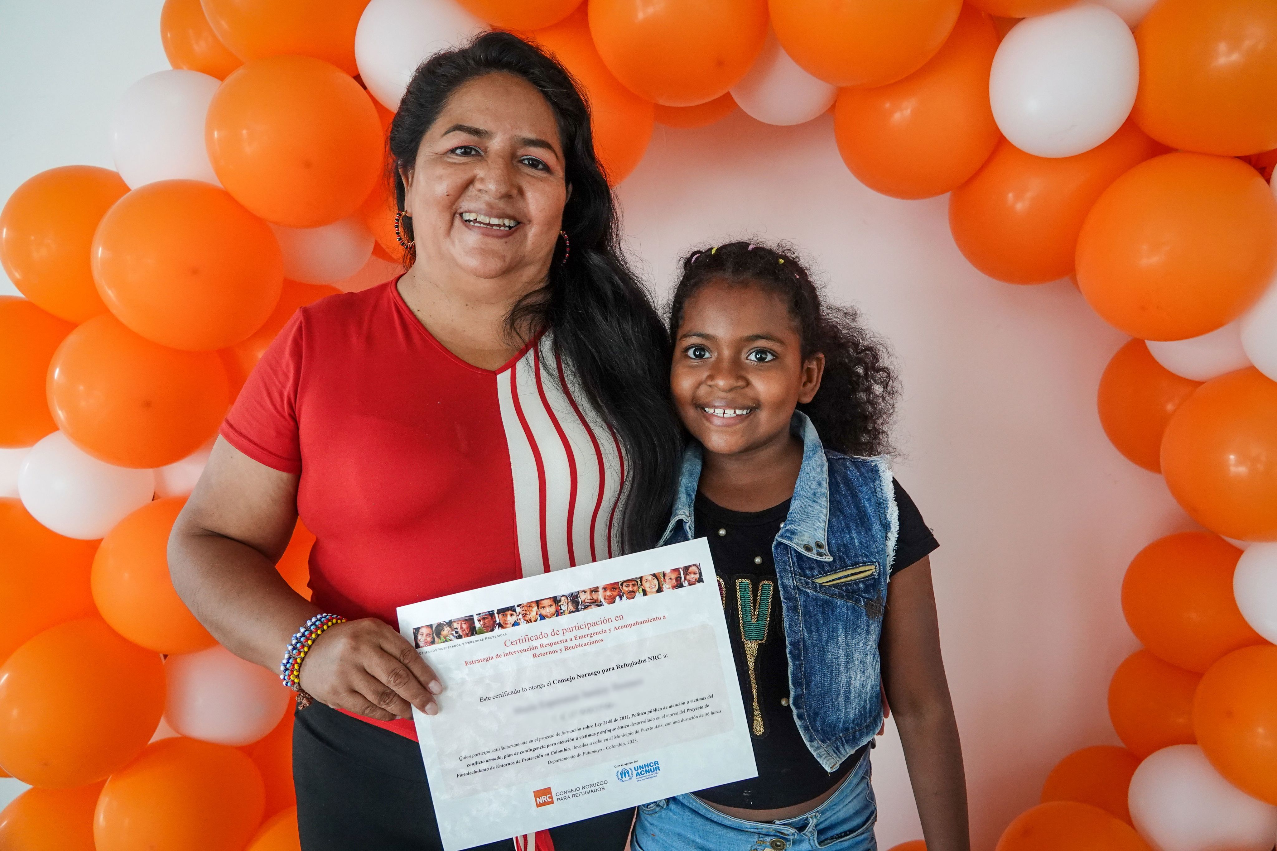 María Esperanza se capacitó y el día de su graduación estuvo con su hija, Evelyn, quien además de acompañarle en algunas de las formaciones, también estuvo allí cuando María sostuvo el diploma en sus manos.